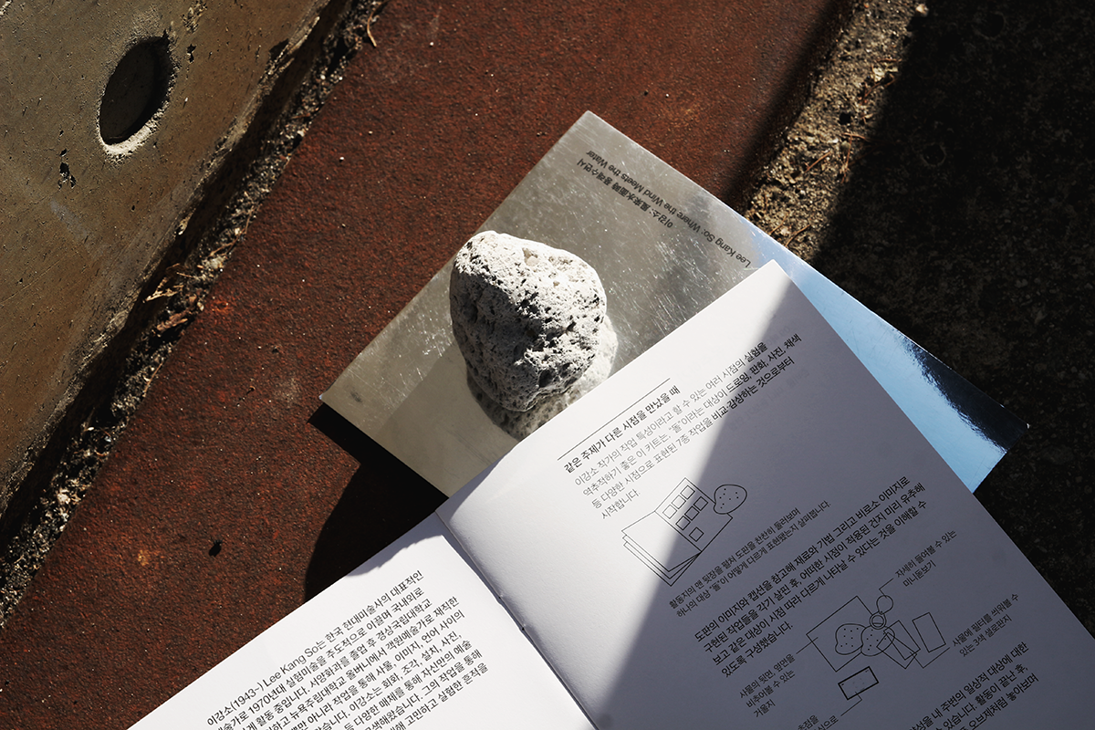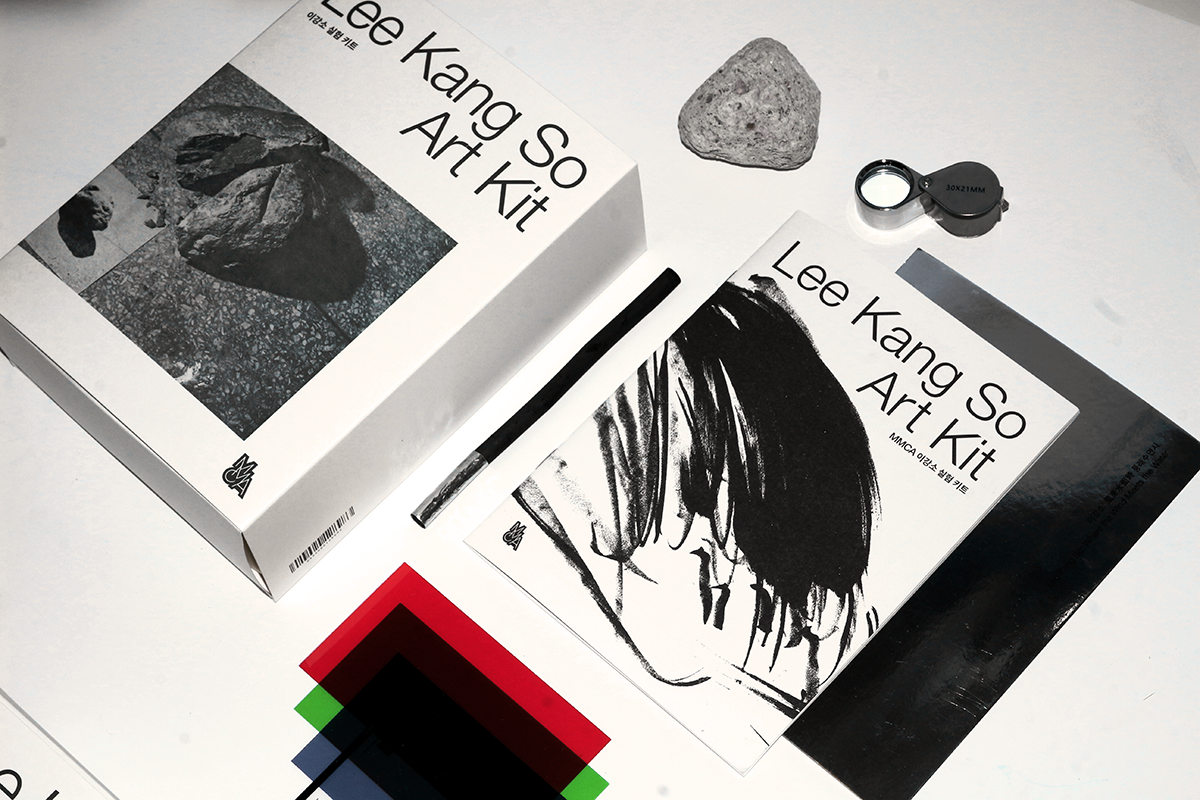 The kit includes materials such as mirror paper, charcoal, a magnifying glass, and transparent film sheets. Through these, participants can engage directly with Lee Kang So’s meticulous approach and experience his inherent philosophical and experimental thought process.