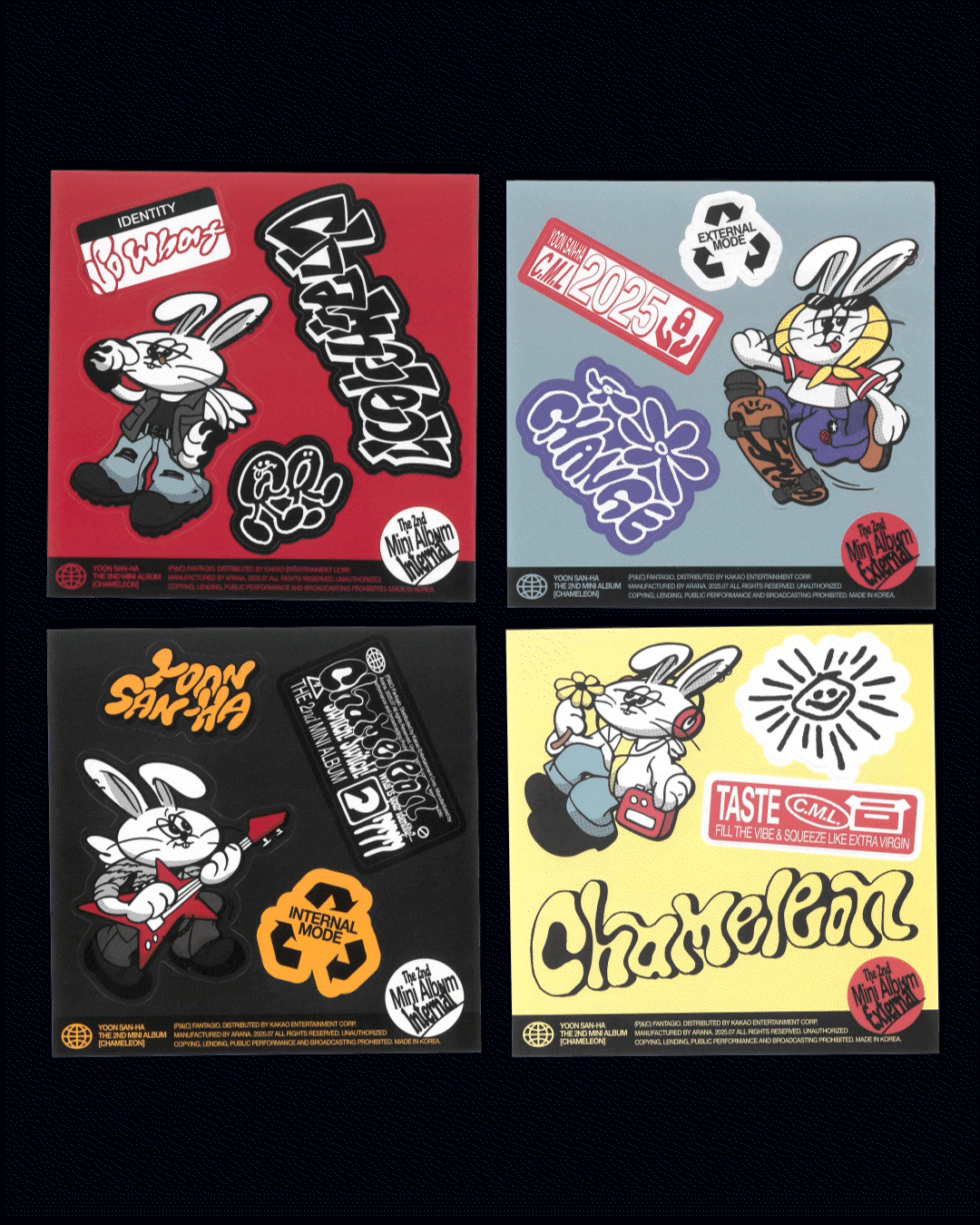 We developed the key visual, character design, and lettering for artist YOON SAN-HA's album 《CHAMELEON》, and carried out the album and promotional design. In line with the concept of showing various facets like a chameleon—the album's title—we created a graphic identity that could be applied comprehensively throughout the project.