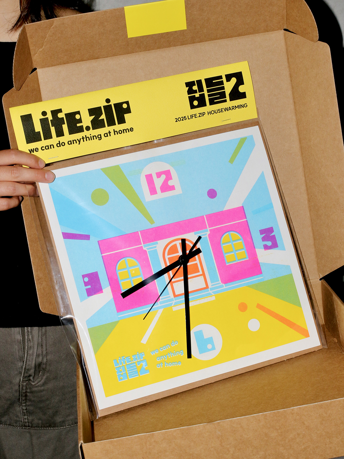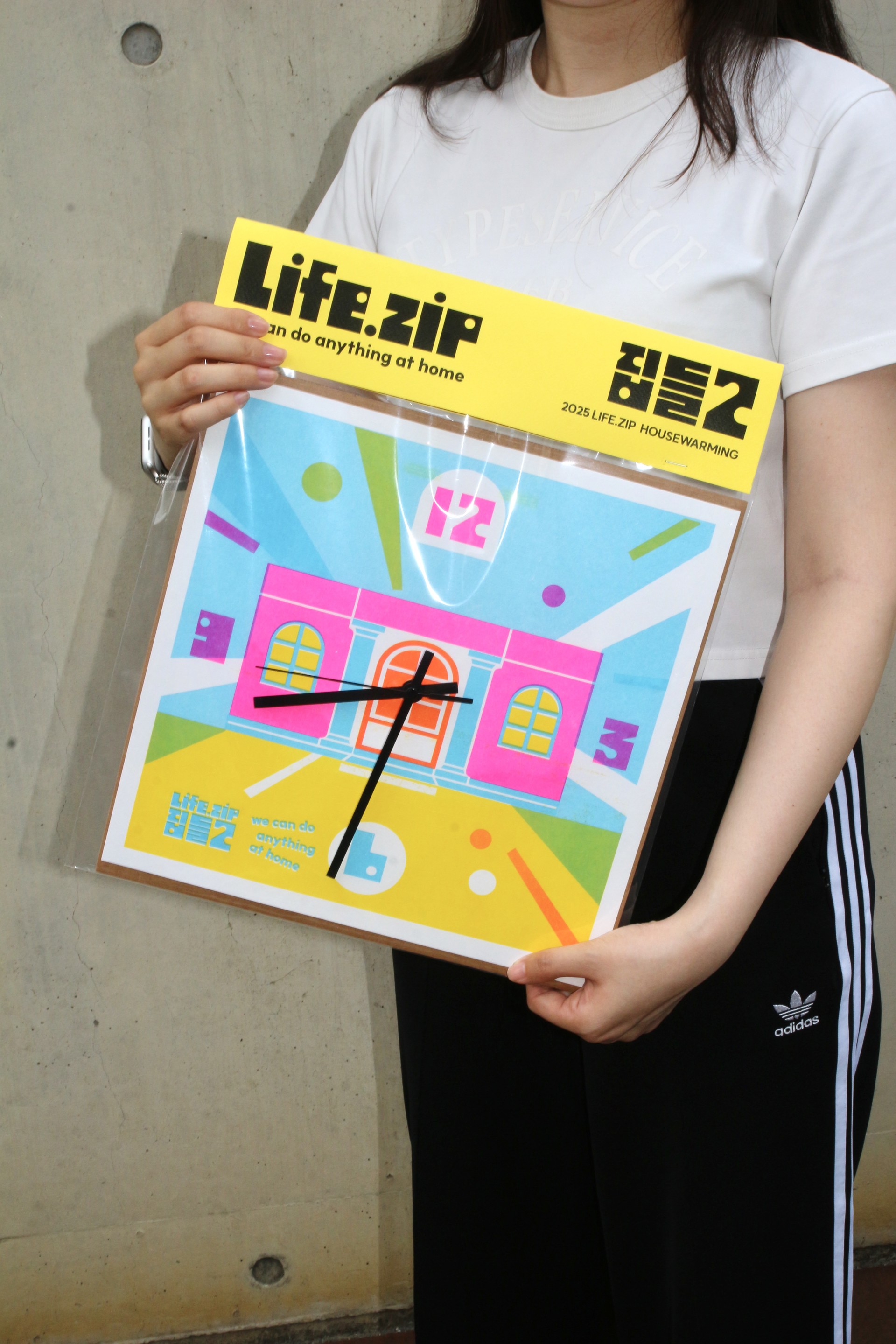 We produced a collaborative risograph clock with HWF.Edition to commemorate the second popup "Zipdeul2" by living community Lifezip. This product reinterprets the key visual of "Zipdeul2" using risograph color tones.