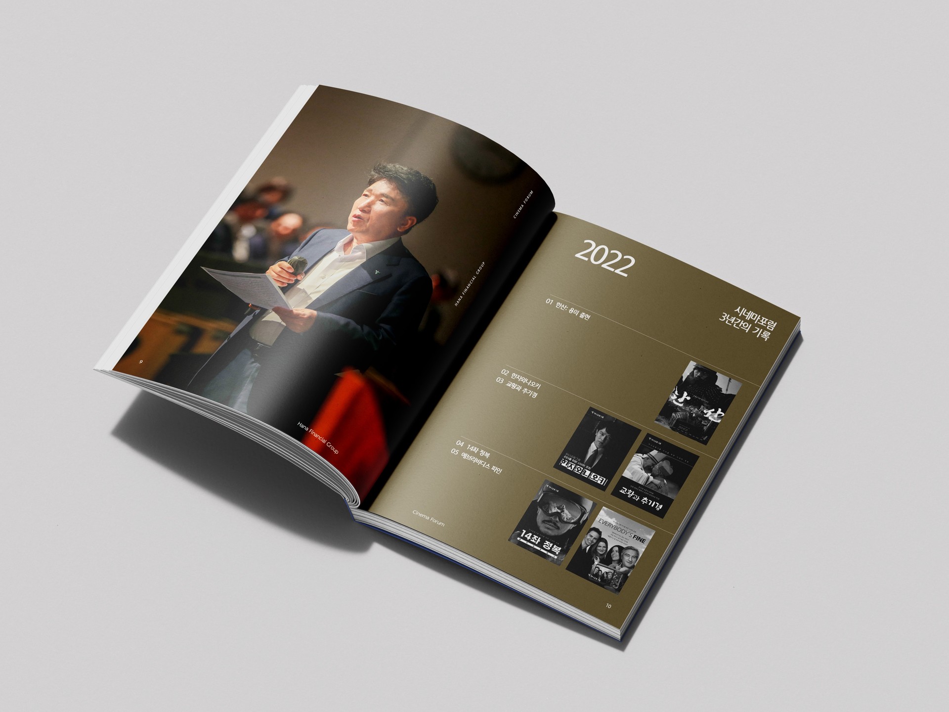 하나금융그룹의 리더십 강화 프로그램 '시네마 포럼'의 내용을 담은 책자를 디자인했습니다. 프로그램이 진행된 지난 3년 간의 내용을 체계적으로 담아내며, 리더십에 대한 메시지를 효과적으로 전달하고자 했습니다.